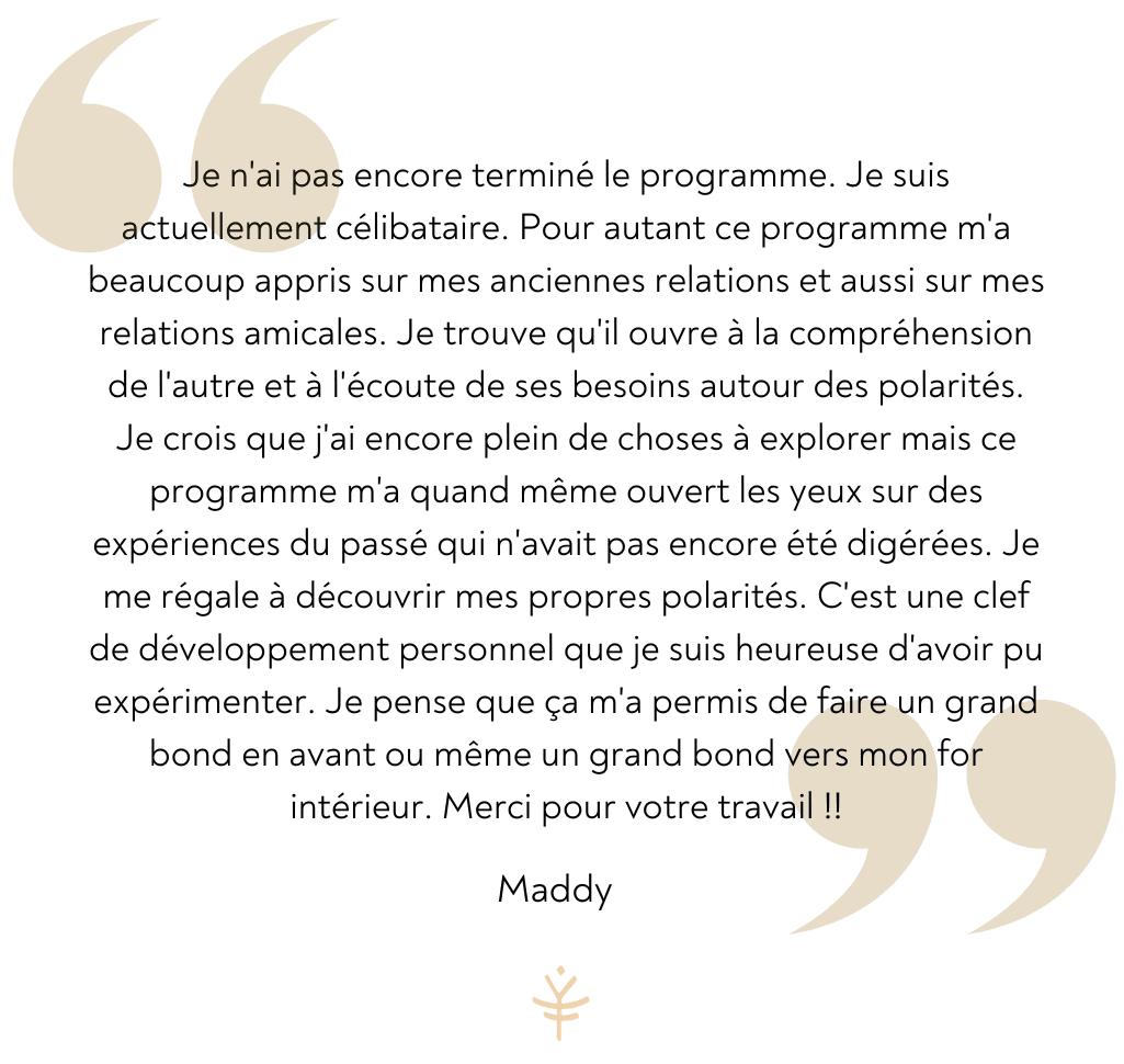 Une relation dans laquelle vous pourrez, à travers l’autre et avec lui·elle, vous découvrir, vous dévoiler, vous initier à l’amour sincère, puissant, passionné et passionnant.